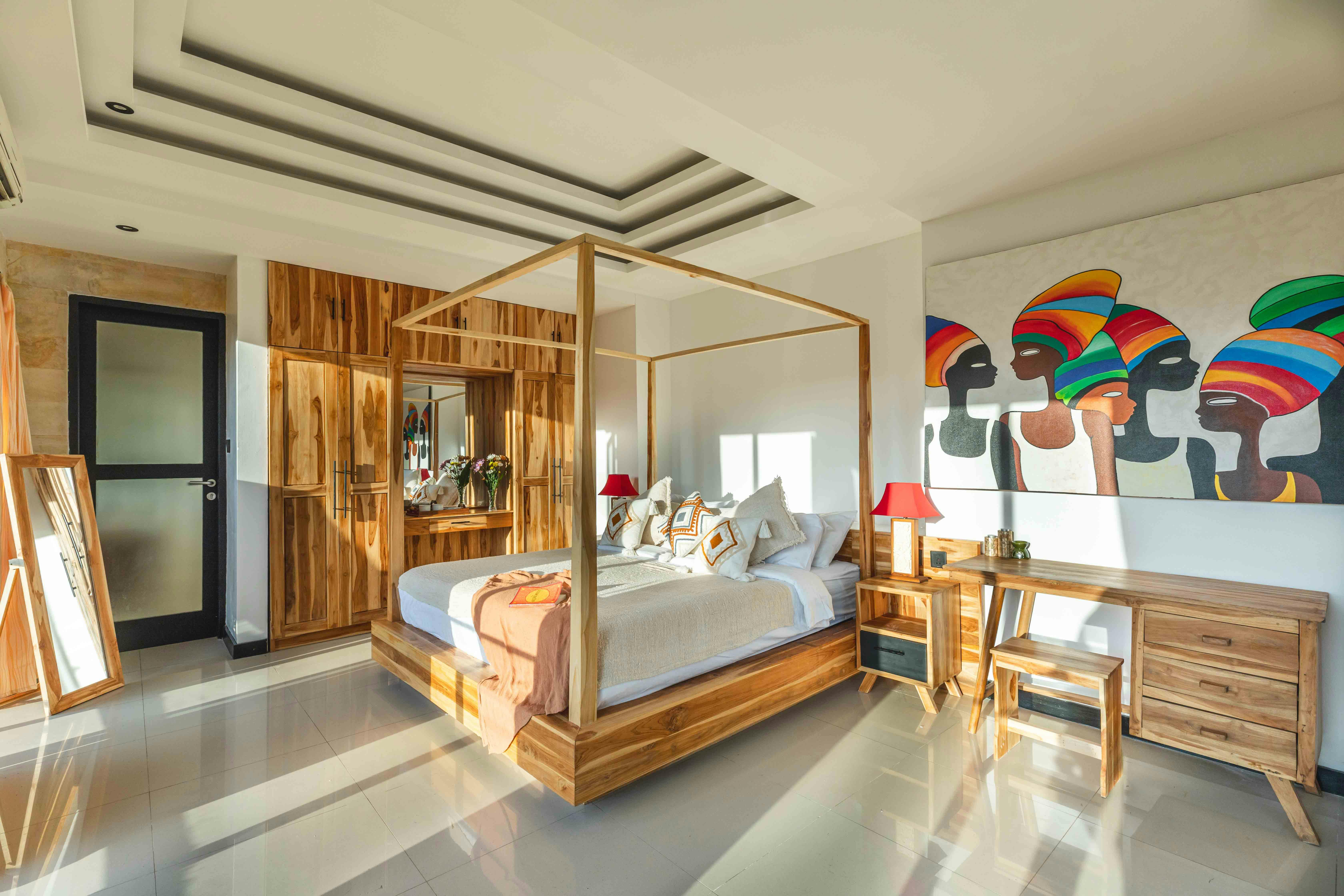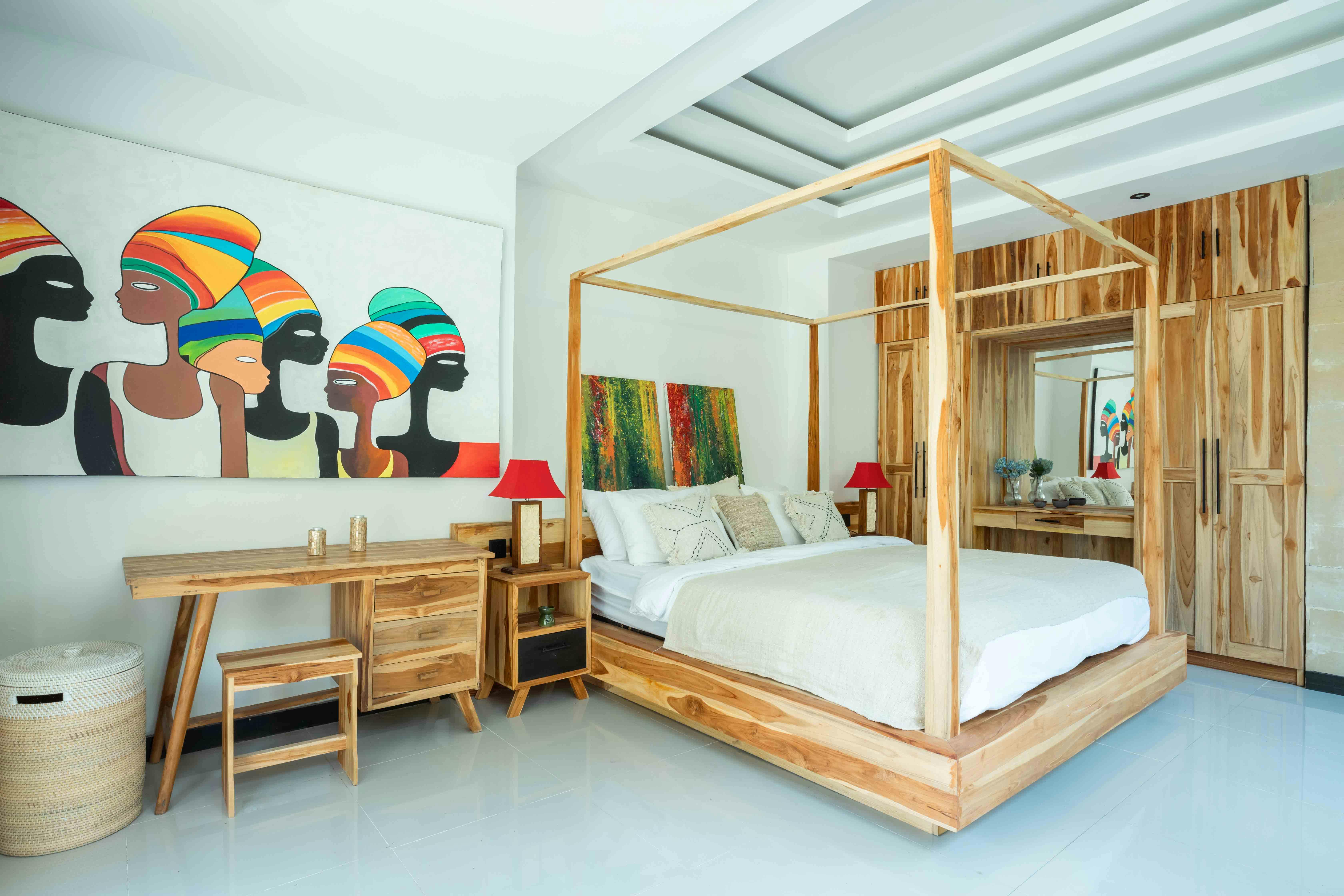 All bedrooms have a King-size bed, AC, mosquito net, wardrobe to hang clothes, dedicated work desk and attached bathroom.